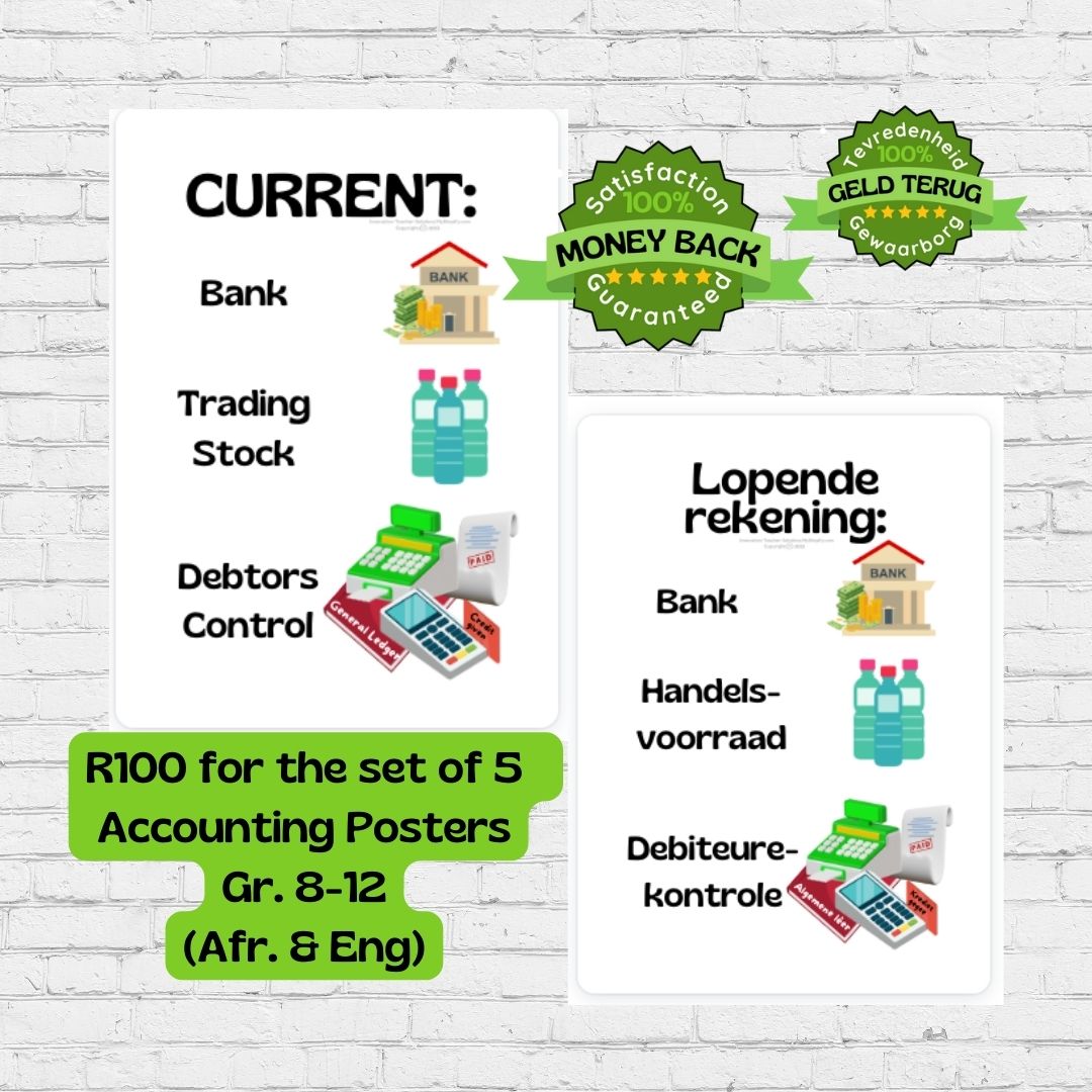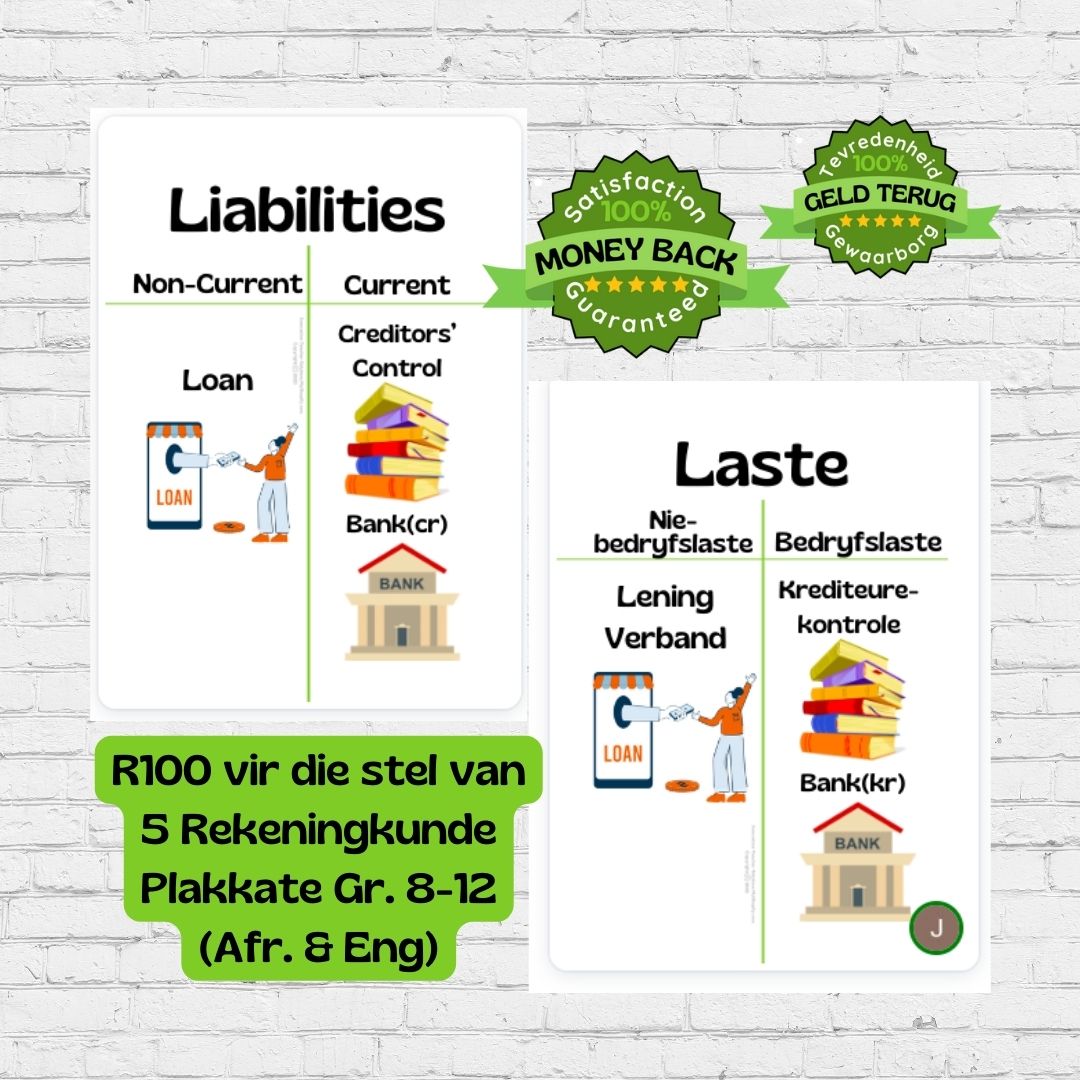 Set of 5 A3 PDF Accounting Posters (Afrikaans And English)