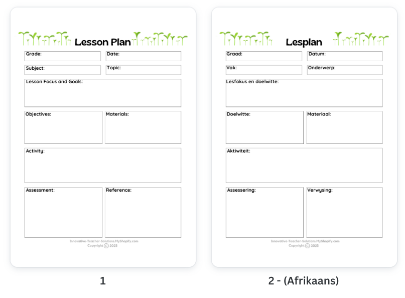 Lesson Plan Template/ Lesplan Meesterkopie PDF & Google Doc